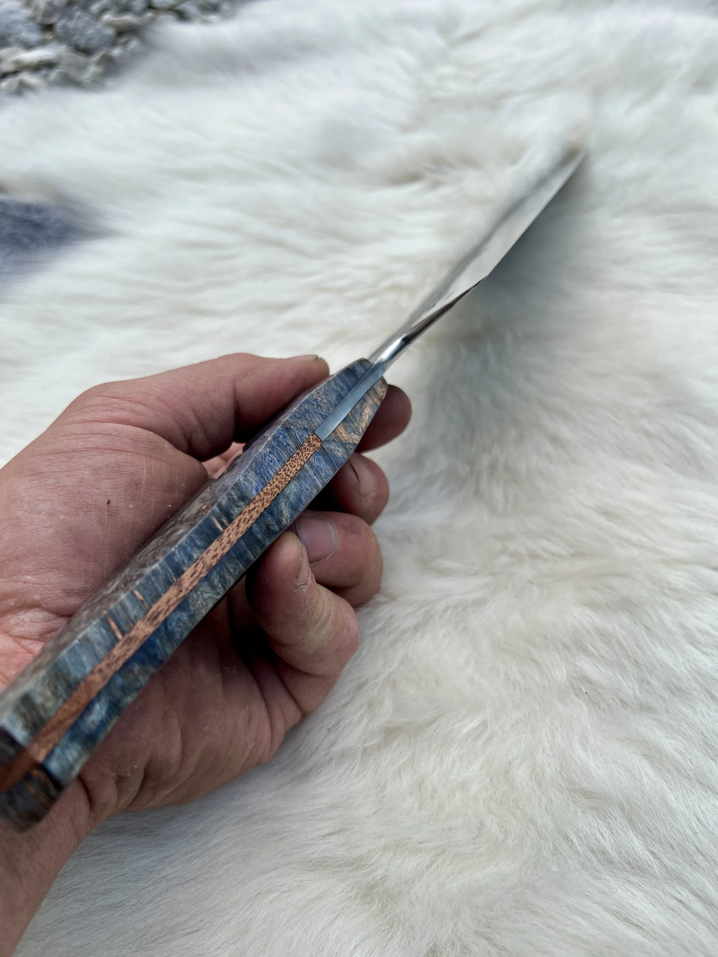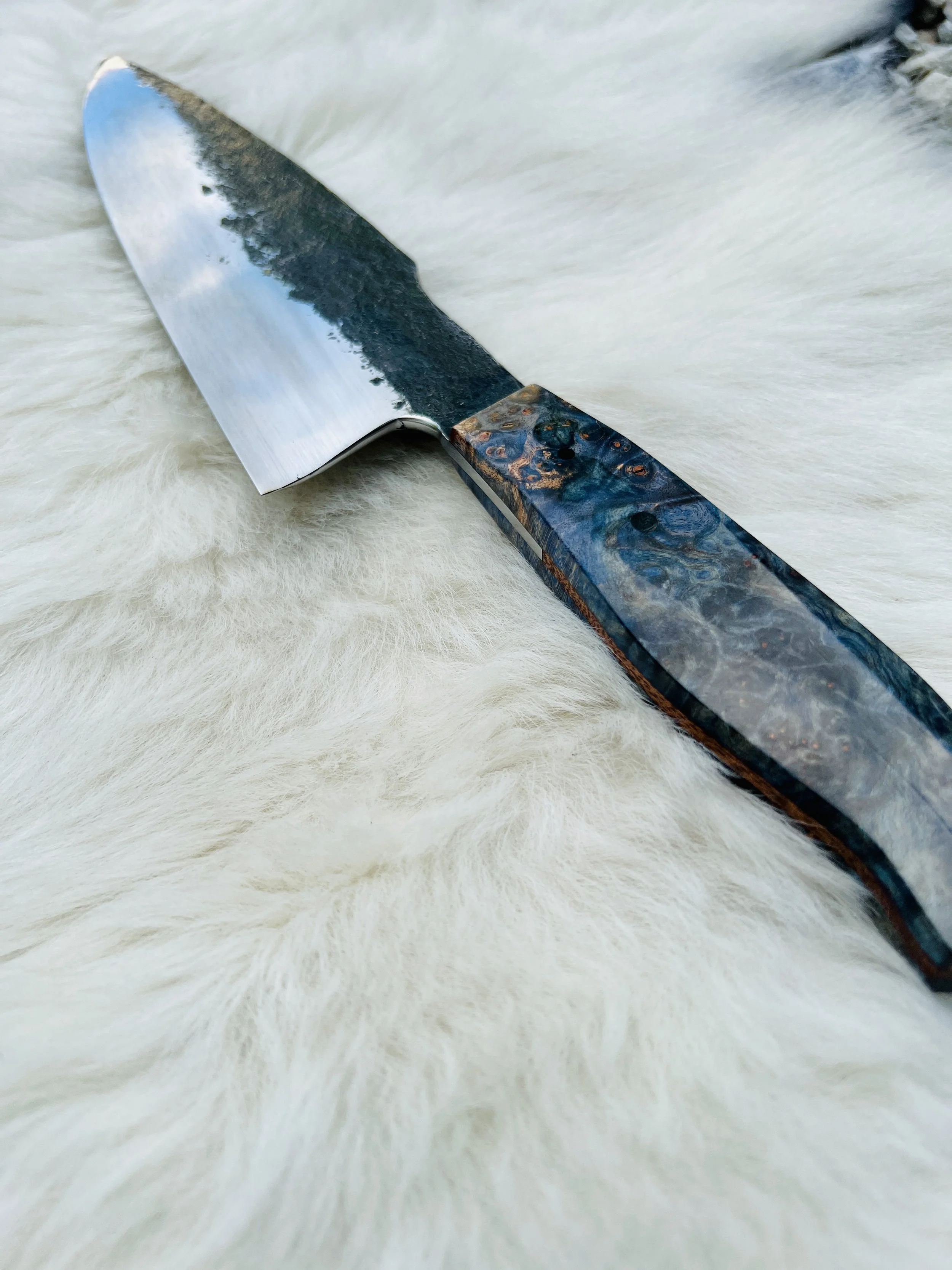 All LPF custom knives are hand forged with American made high carbon steel, with top quality handle material sourced near and far from around the world. All materials for crafting art, my tooling, equipment, and even disposables are attentively sourced to support USA made makers, manufacturers, and businesses.